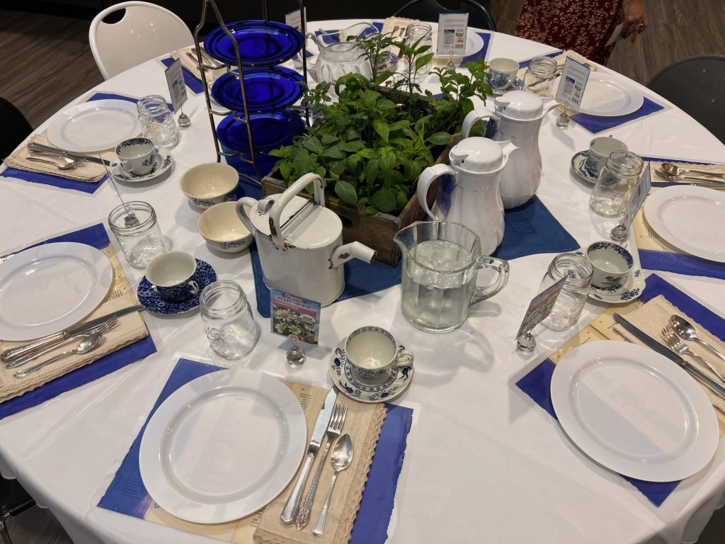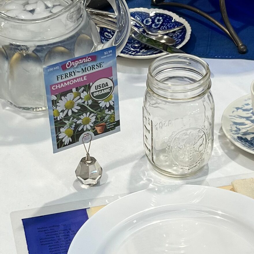 For the blue table I wanted to add a garden element. So I placed flower seeds around the table and a group of herbs in the center.