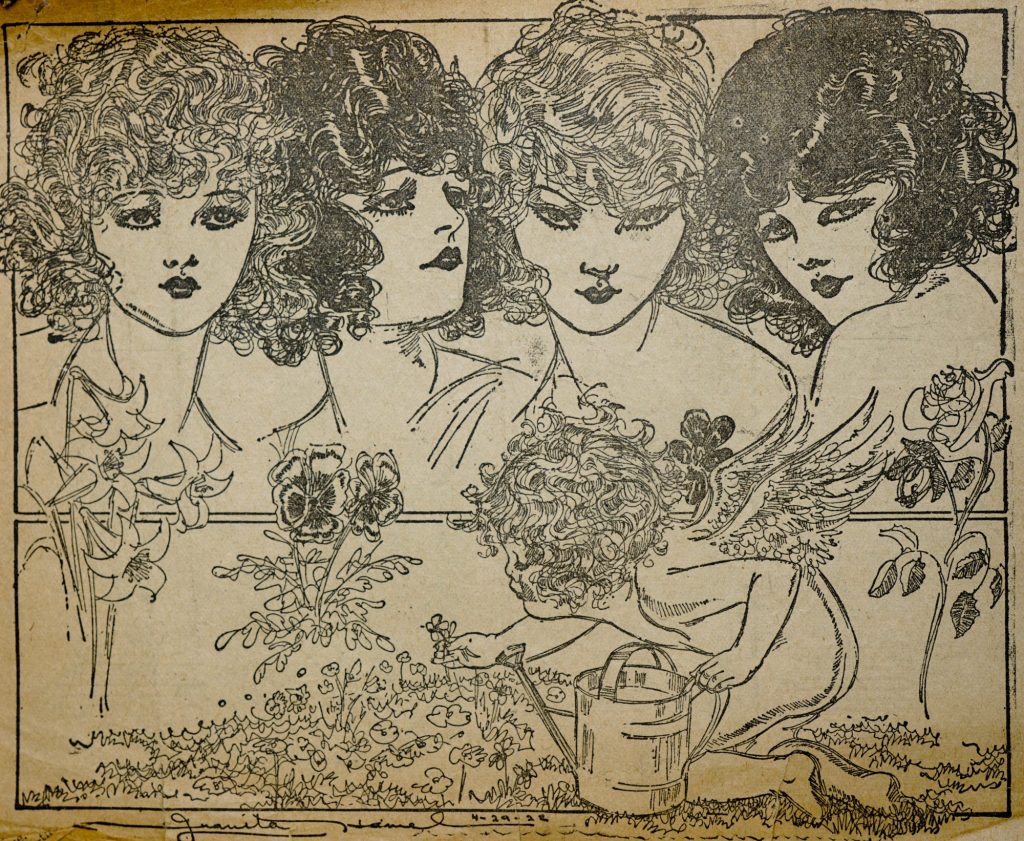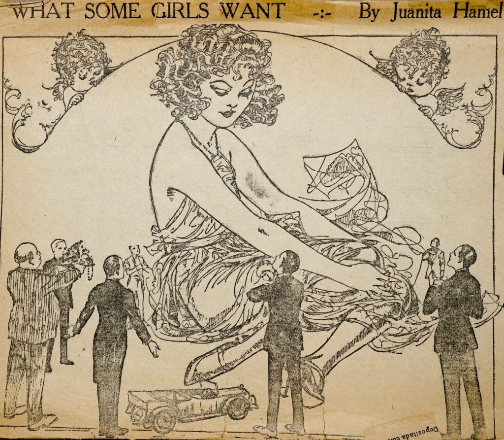 The American artist, Juanita Hamel, created illustrations for newspapers during the 1910’s and 1920’s. At one point in her career, 250 newspapers printed her sketches.