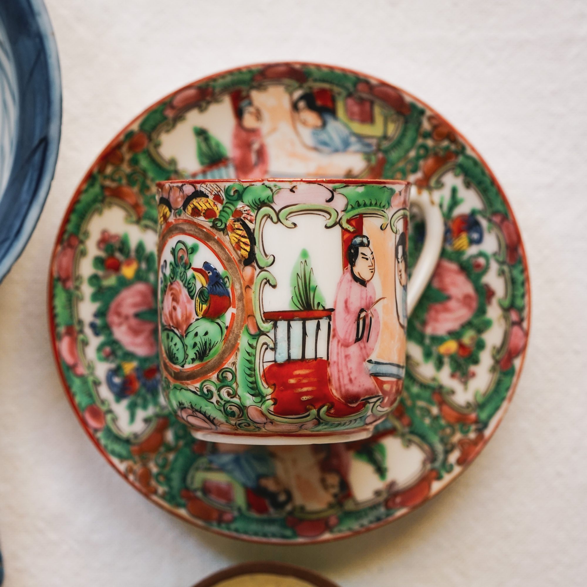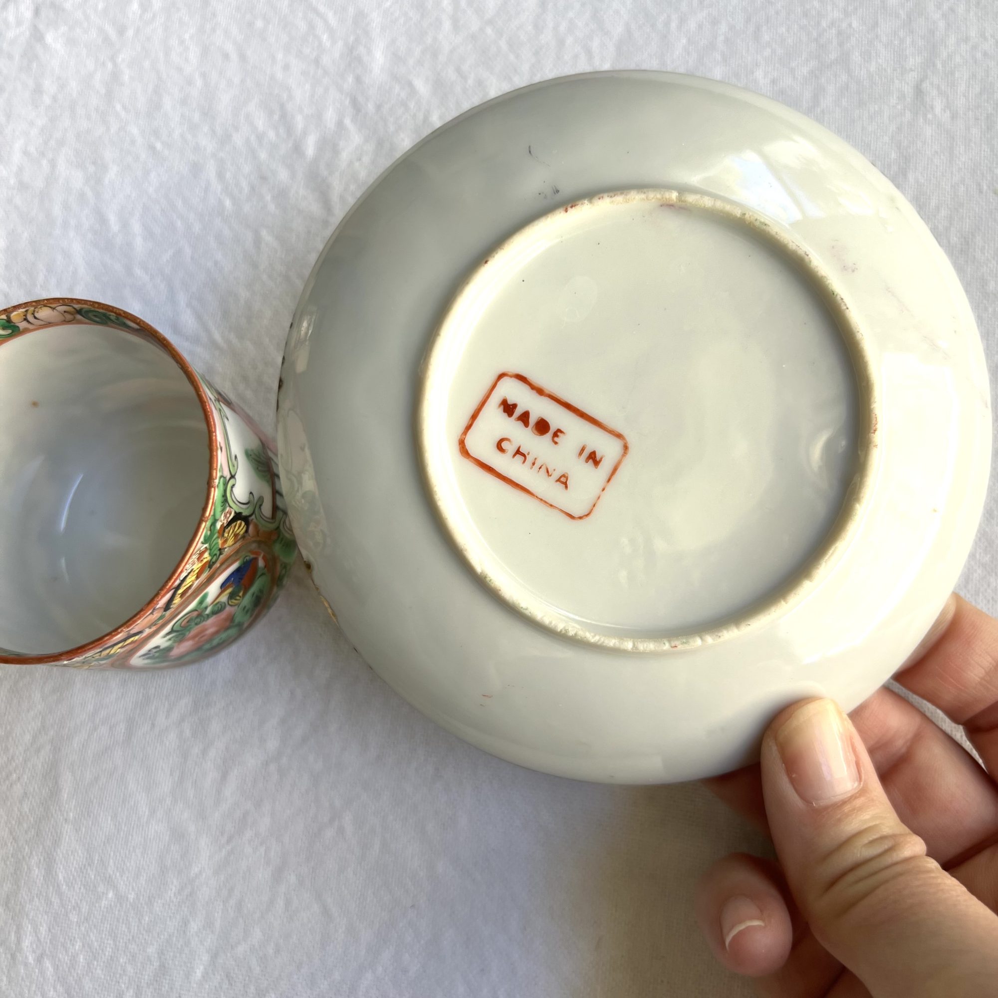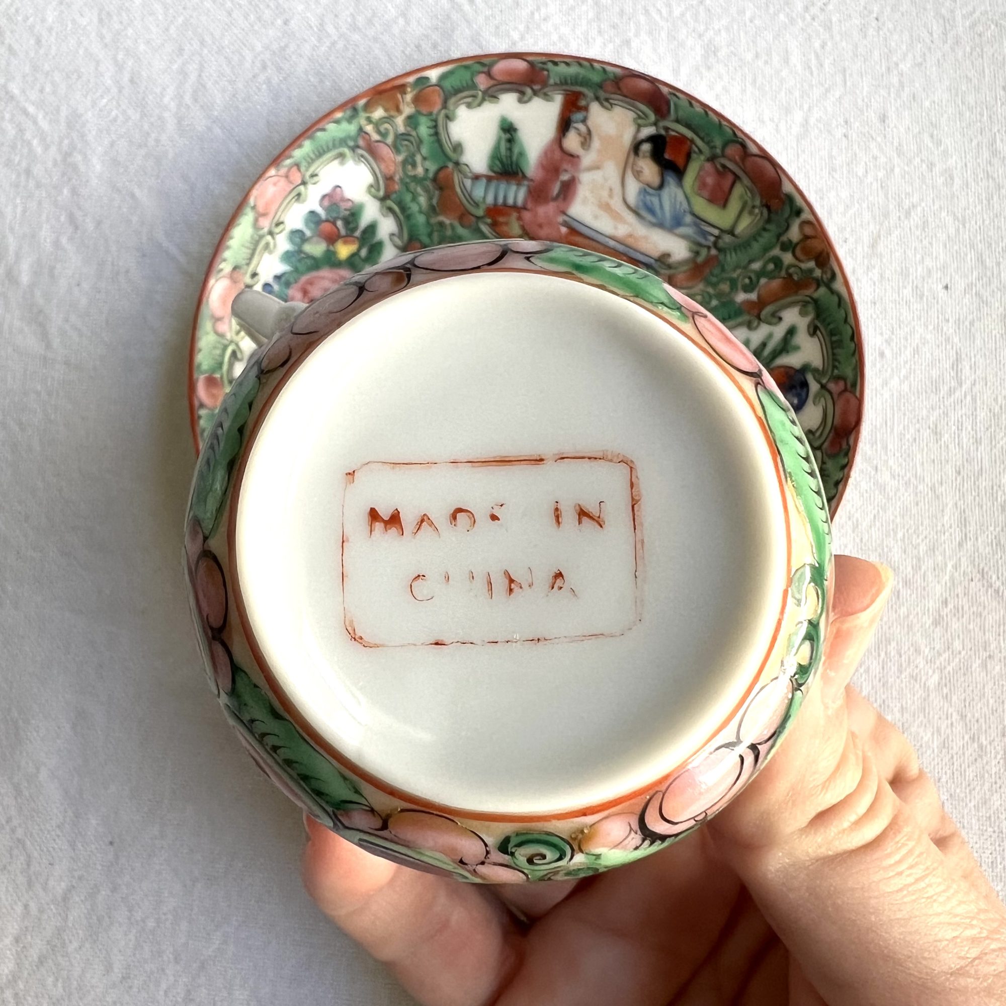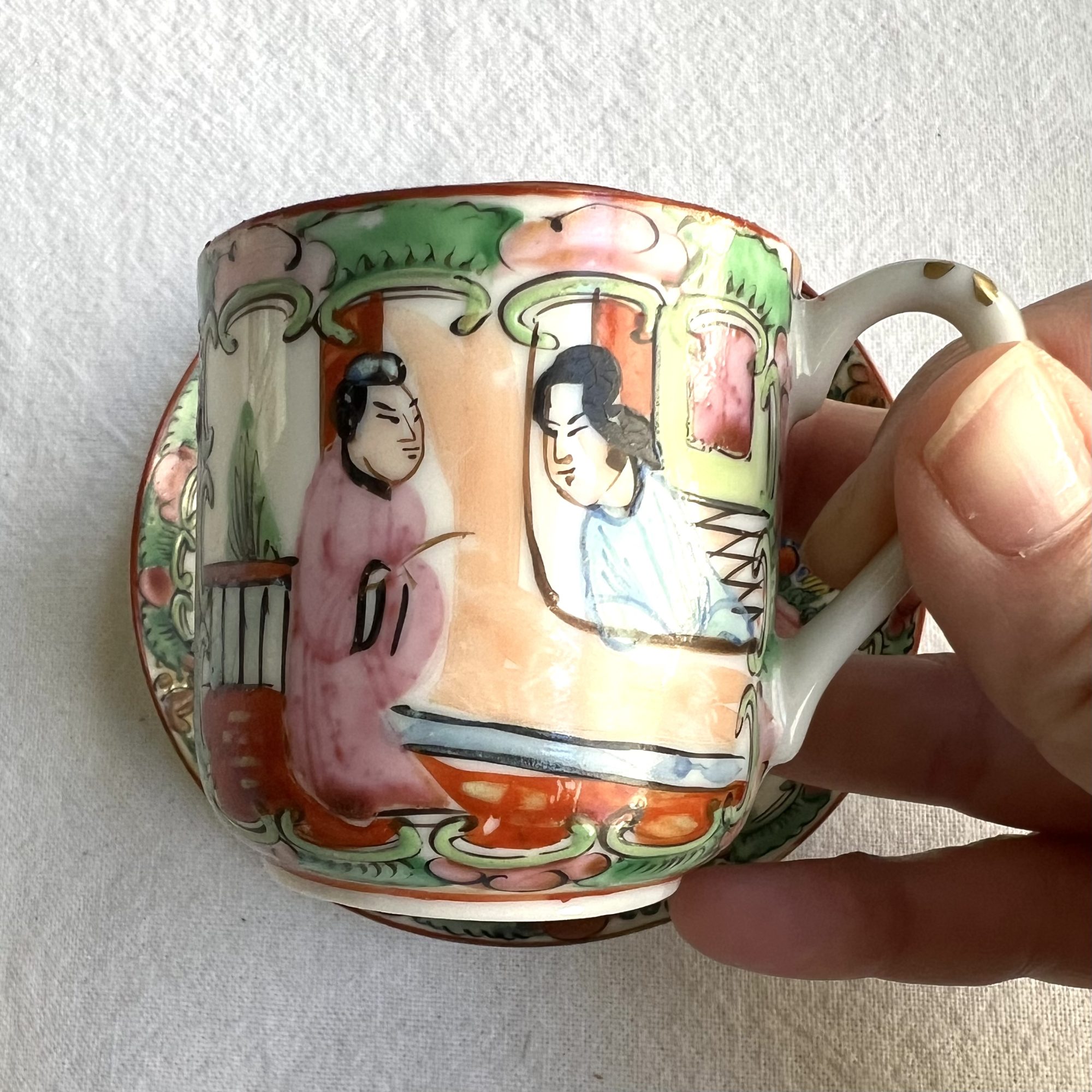 Chinese Famille Rose Demitasse Cup and Saucer (4.5” width)