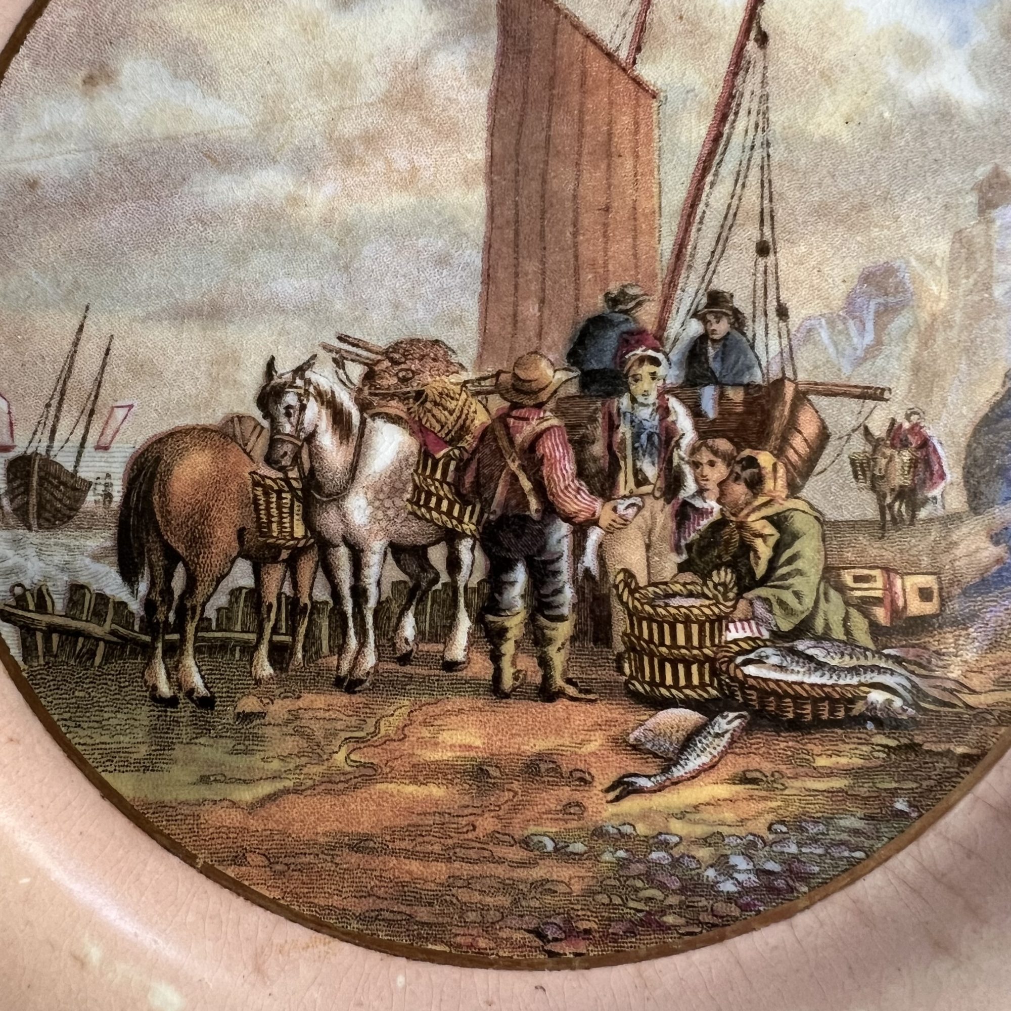 Prattware Plate “Landing the Catch” (7” width)