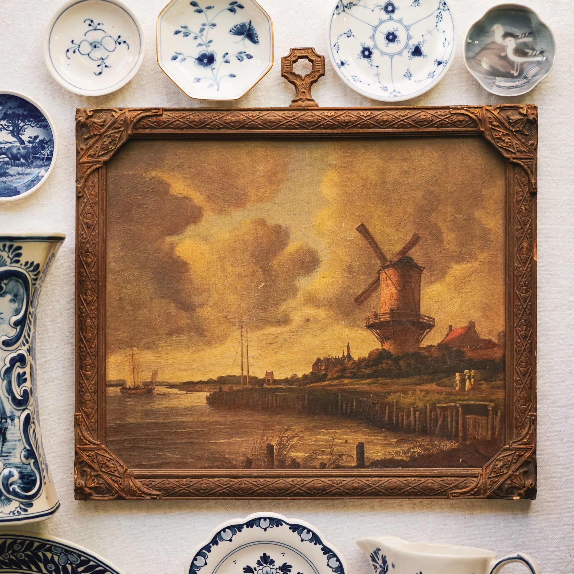 Very Old Reproduction Painting on Board of The Windmill at Wijk bij Duurstede