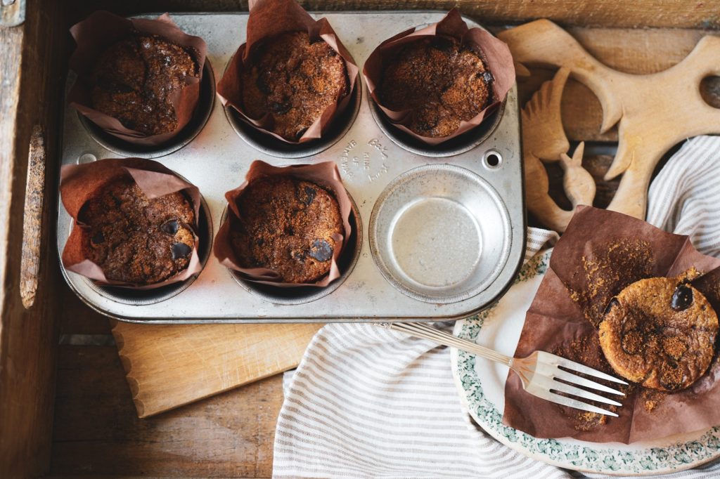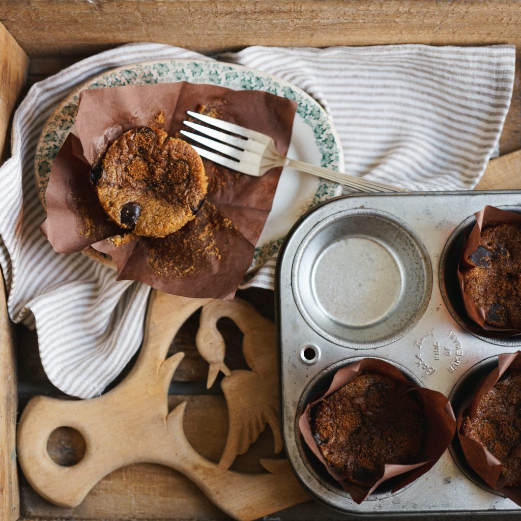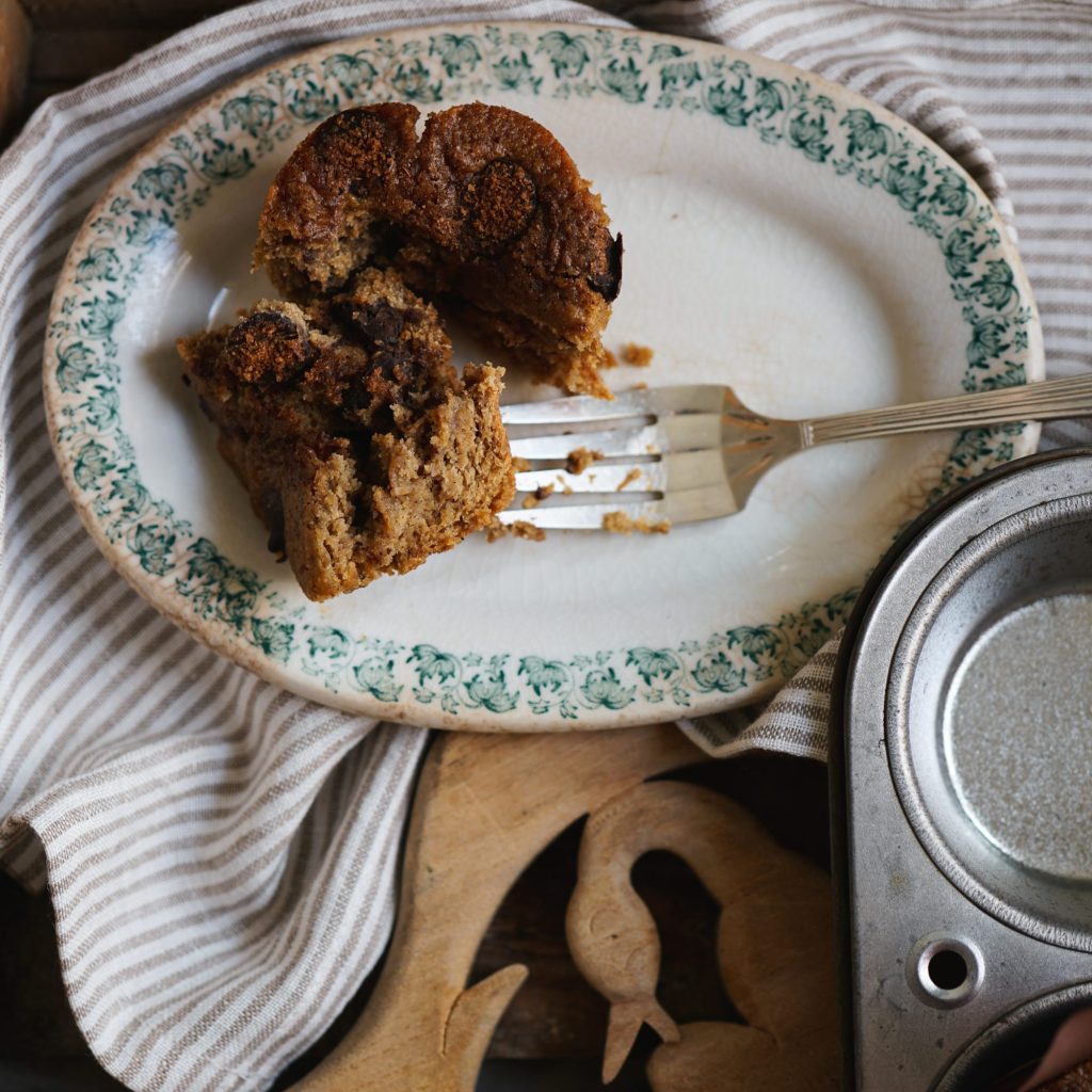 Pour ½ of the batter into the prepared baking dish. Or if using cupcake liners, spoon enough in each so that it comes up ¼ of the sides. Then top with the half of the chocolate chips followed by about half of the cinnamon and coconut sugar mixture. Repeat by adding the final layer of batter, chocolate chips, and cinnamon sugar.