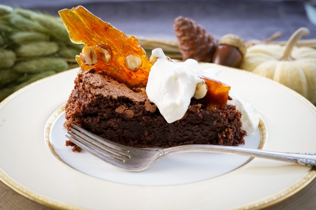 Oh how I love hazelnuts and chocolate! This cake is a must bake. And the brittle on top looks like art.