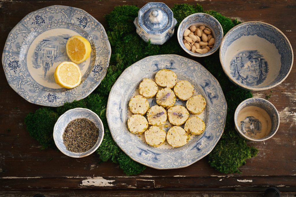 Pistachio-lemon-lavender Shortbread Cookies