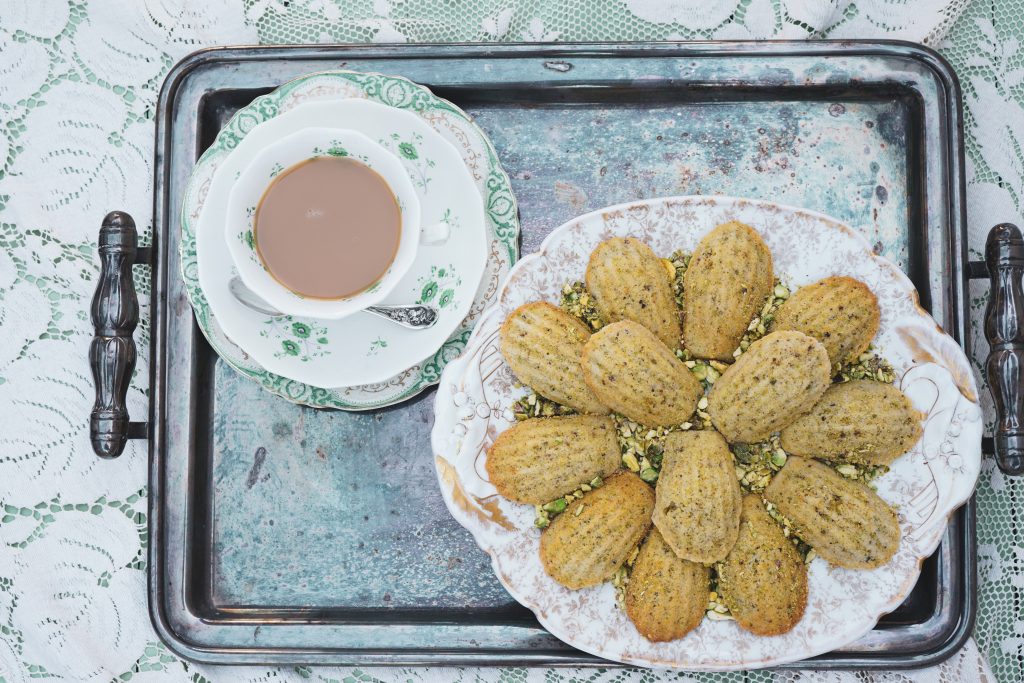 These madeleines are so indulgent. There is a quality to the batter, with the addition of the pistachios, that makes it more than just a cake.