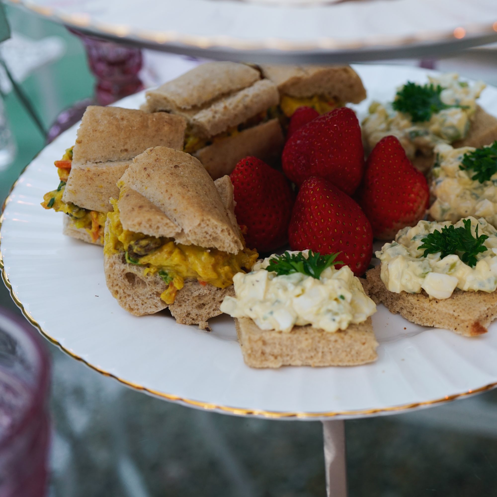 The curry chicken salad is a delicious addition to any tea party. Next time, I will chop the chicken salad a bit first, so that there are finer bits of chicken chunks.